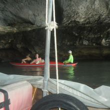 帰りは、カヤックを楽しむ人々を掻き分け、水位が低い時だけくぐる事が出来るタムタル洞窟を楽しみ、その後前記のパンイー島で昼食タイム。