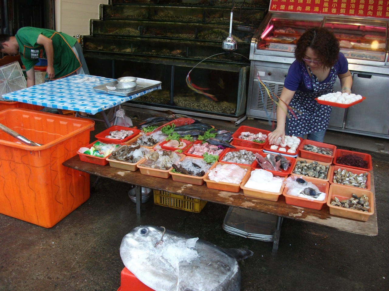蘇澳駅前でラムネを飲んで、名物の羊羹を買って、昼飯に海鮮料理を食べに行ってきました。 タクシーで10分くらいです。