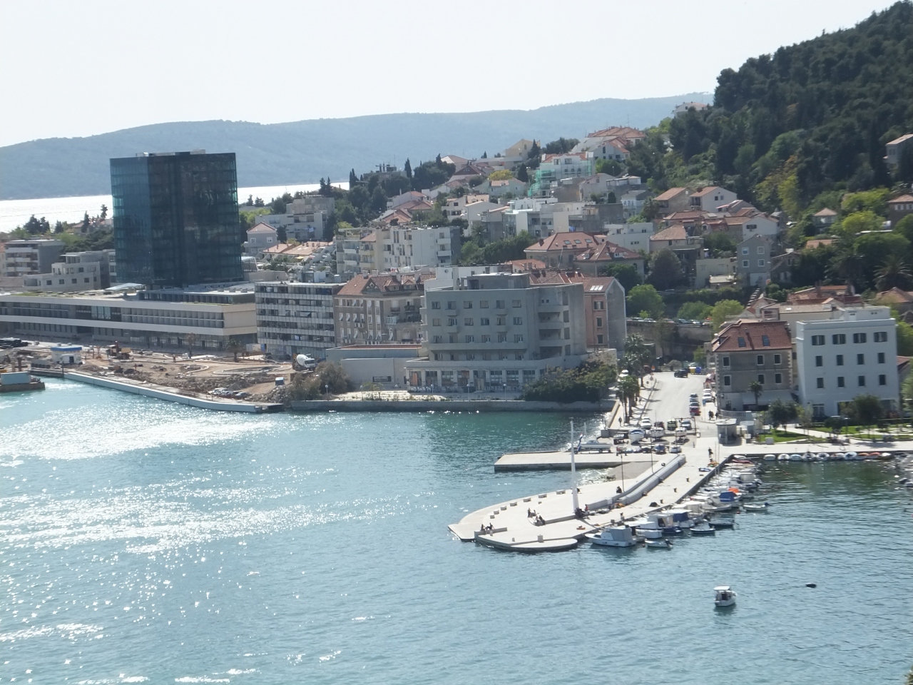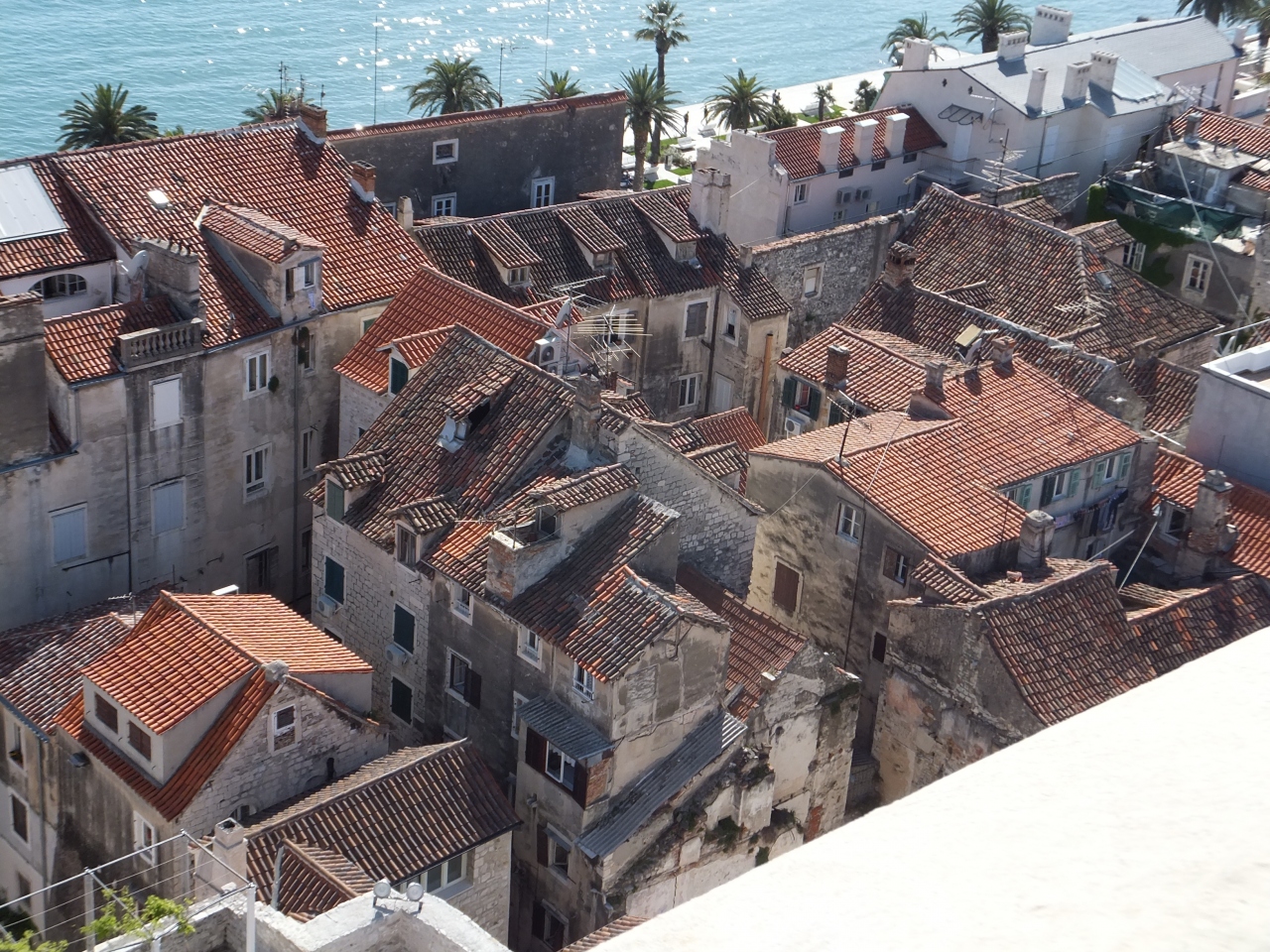 スプリットの街が一望できて、本当に綺麗です。海を見れば大きな豪華客船と青い海、街を見下ろせばオレンジの屋根のかわいい建物群、山をみれば急峻な山々。絶景です。