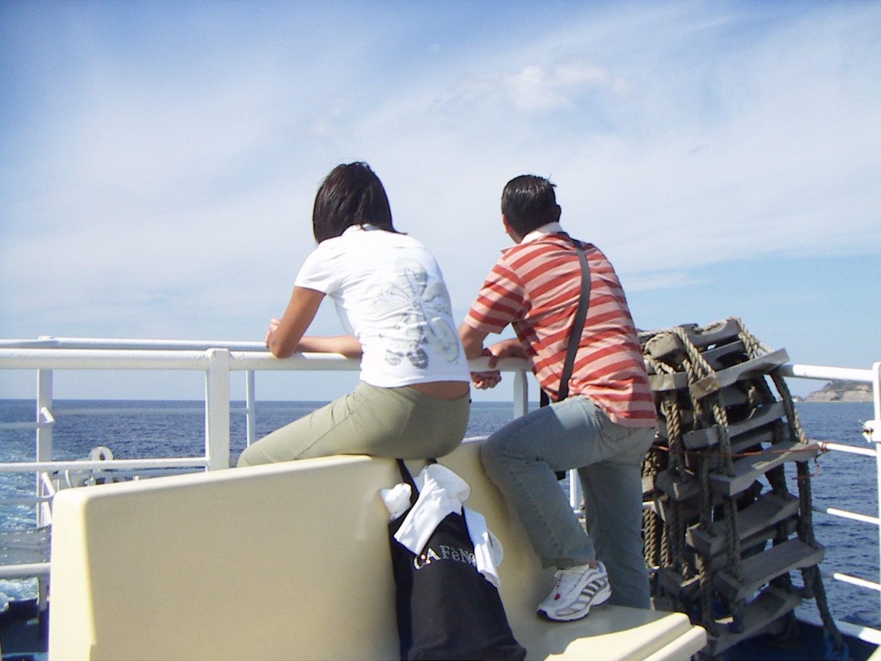 この航路は大型船です。 食べ物を買い込んで甲板上で食べるのも気分が良いです。