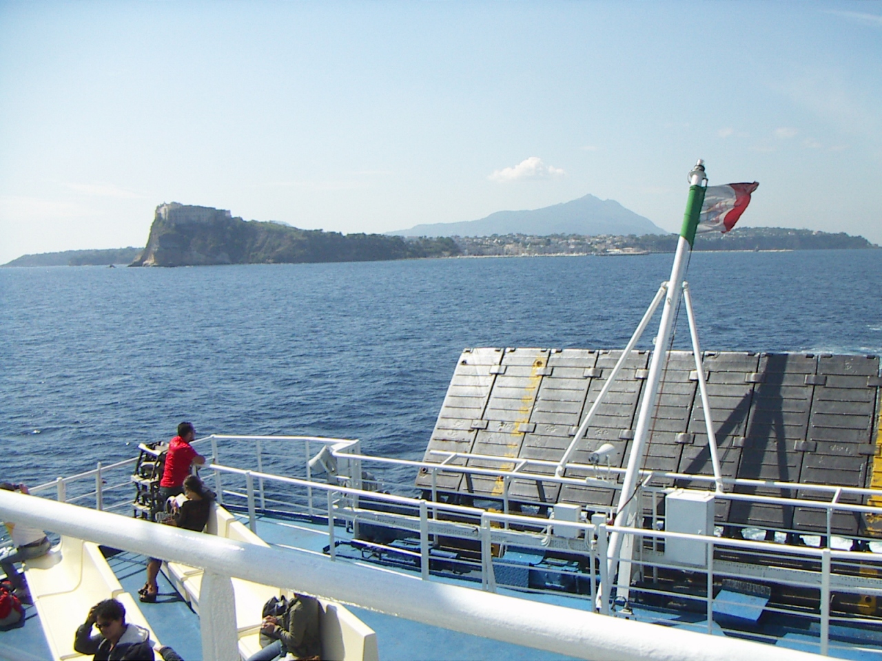 景色も良いです。 ナポリ港には大型客船もあり、華やかです。