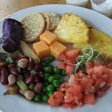 野菜だけでなくパイナップルやチーズ、ロミロミサーモン、パンやカレーなど、