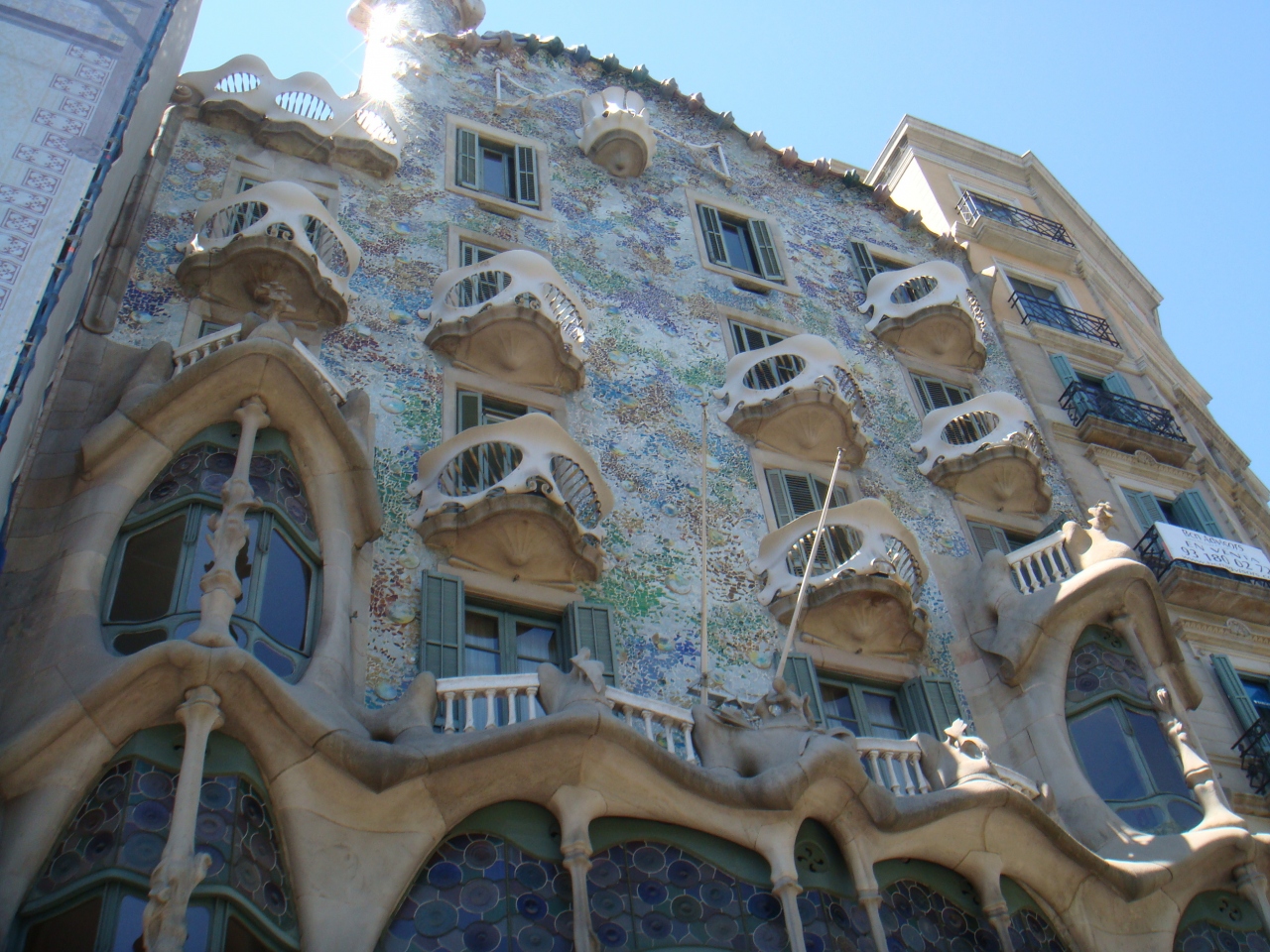 ガウディの作品の中でも、色合いが素敵で上質なかんじのする外観の装飾です。カサミラのように、あっさりとシンプルな質感ではなく、装飾が表面に細かくたくさんついていて楽しい感じのする建物です。ガウディのアイディアは素晴らしく、サグラダ・ファミリアやカサミラ、カサバトリョなど建物によって基本的な趣きが何れも、すごく異なると思います。カサ・バトリョは見ていて、わくわくするような外観だと思います。入場料は高めでしたが、中もアイディアにあふれていて素晴らしいので、ぜひご覧ください。