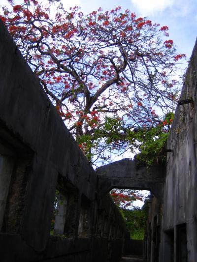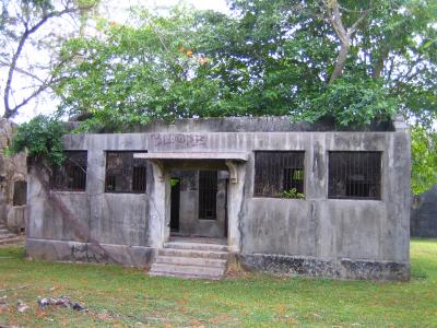 日本統治時代に刑務所として使われていた史跡で、独房が今も残っています。太平洋戦争の時には、アメリカ軍の捕虜が収容されていたのだそうです。ところどころにアメリカ軍による砲撃の弾痕が生々しく残っています。