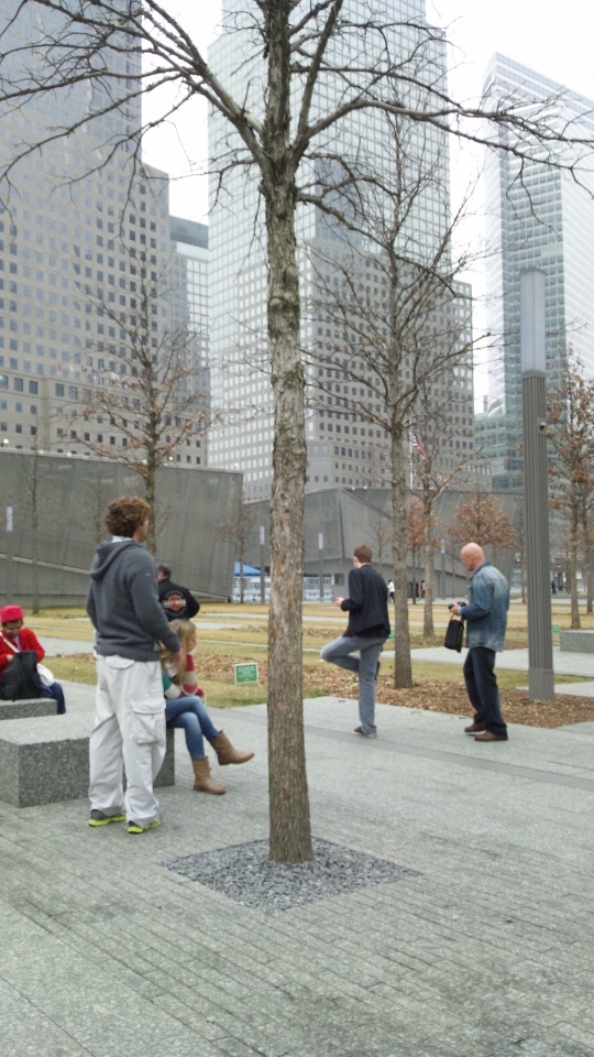 池は貿易センタービルの跡地にあり、囲いには亡くなった方の名前が刻まれている。