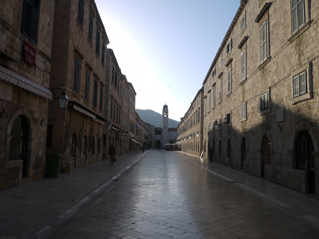 バス停のすぐ近くのピレ門から入ってすぐの通りがこの大通り。昼でも夜でも人がいっぱいでとても賑やかな通りです。ですが、朝一番は人通りも少なくまたちょっと違う姿を見ることができます。