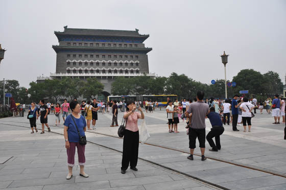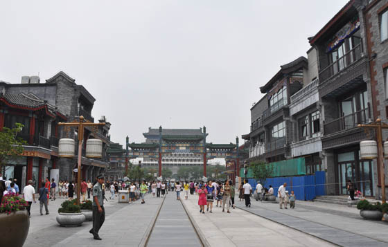 天安門広場の南端にある正陽門は,毛主席紀念堂の南に位置し,明代の1420年の建造された。今も当時の原型を残す数少ない門として,国家の保護を受けている。道路を挟んださらに南側には,箭門があり,その南側には古くから商店街があり,賑わっていたが,2007年から,清末期から中華民国建国のころにかけての街並みにしようと,再開発が進行中だ。その街並みのメインストリートを前門大街と呼び,北部の通り沿いは建物が一新されたが,南部はこれからだ。