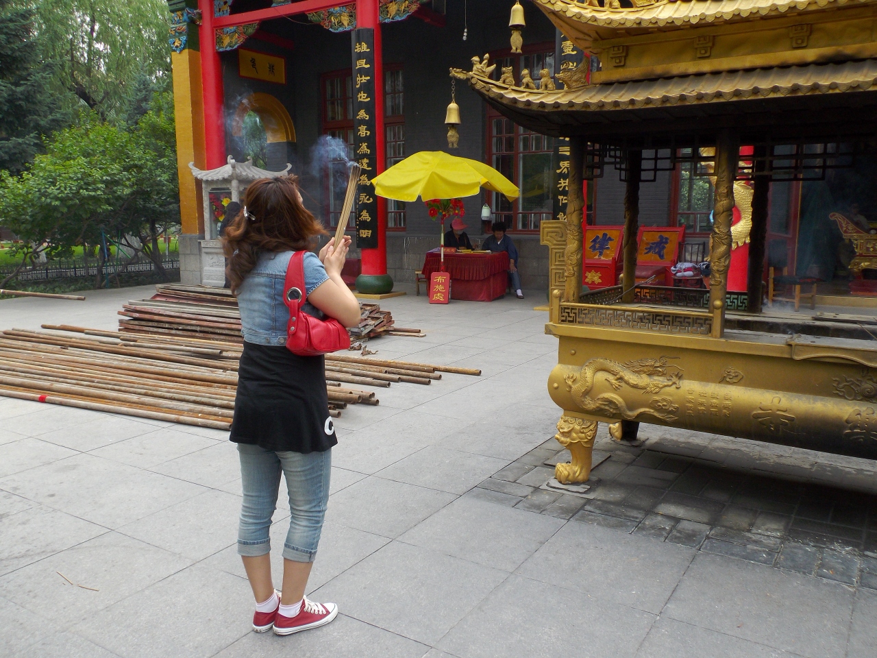 簡単に書けば、線香の束に火をつけ頭の上に掲げ東西南北に礼、その後ひざまづいて・・