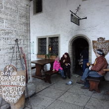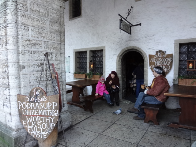 広場に面したお店で、おいしいスープやパイが1ユーロで食べられました。
