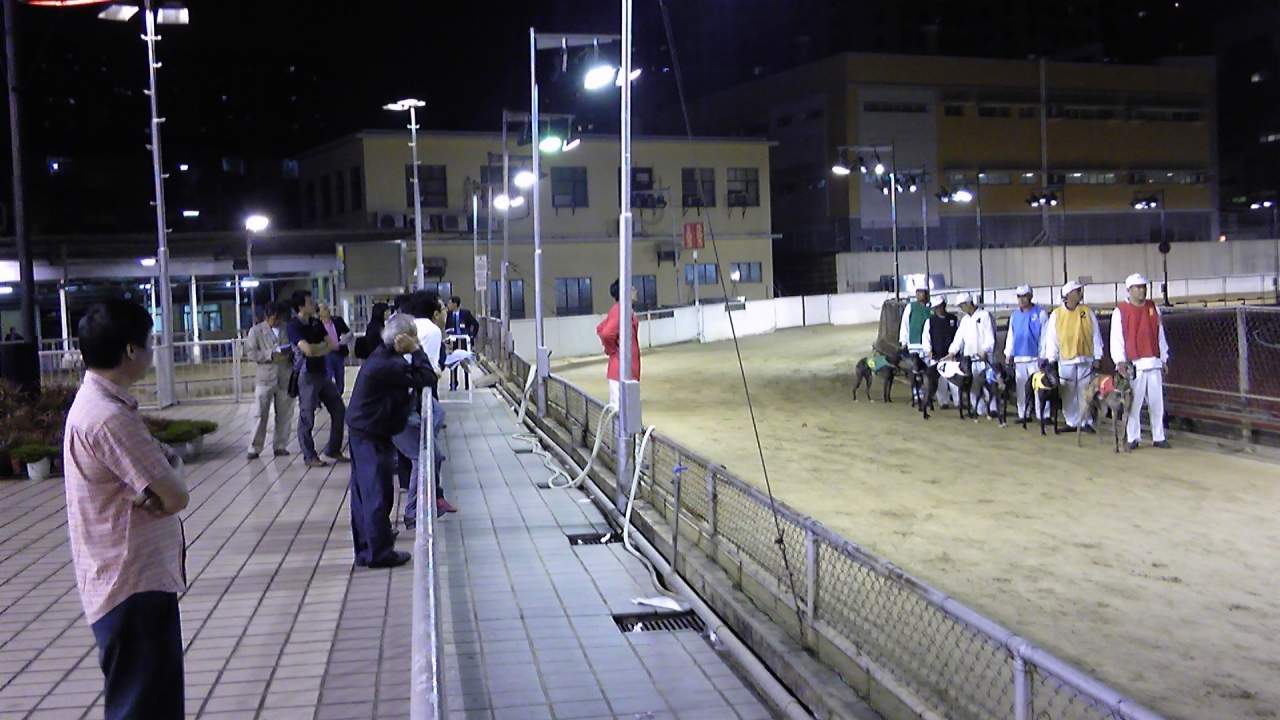 午後遅めから夜にかけて行われるドッグレースです。6頭の犬が競馬のパドックのような砂場でまず顔見せし、その後、コースのゴール板近くを調教担当の人に引かれていったりきたり、その様子を見て窓口で「犬券」を購入します。香港ドルとマカオパタカによって、購入窓口が異なるので注意が必要です。投票券の種類は、よく理解できなかった面もありますが、単勝のほか、連勝式(複式も単式もあったと記憶)などもありました。ネットでも購入できることからか、現地に足を運んでいる人は少なく、逆に観光客にはゴール板前を占有でき、有難かったです。弱い(負ける)犬は、強い犬におびえるのか、顔見せのときにブルブル震えていたり、糞をしたりする傾向があるようです。場内にはレストランもありました。バスで行くかタクシーでの移動が多いと思いますが、タクシーの運転手に「ドッグレース」がなかなか通じませんでした。「カニドローム」というか、中国系の運転手なら「狗場」と書いて見せれば理解してもらえるはずです。