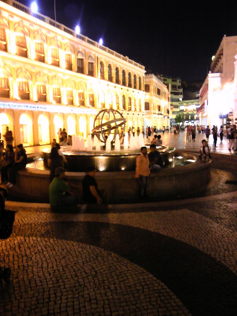 マカオ半島の目抜き通り、新馬路に面して民政総署のほぼ向かいです。カフェやレストラン、市場、ブティック、また一本入った裏路地には屋台の飲食店や物売りが所狭しとひしめき、広場を取り囲んでいます。北に向かって道なりに歩いていけば、砲台や国立博物館にまで至るので、教会や天主堂を見学しつつ、半日ほどでマカオ半島部の中心部分は観光できるはずです。広場は朝昼夜で景観が変わるので、近くに宿泊するなら、ライトに照らされた夜の風景もご覧になるとよいと思います。また広場は祭りや各種イベントに使われることも多く、運がよければそういった風景に出くわせます。夜間(0時過ぎ)でも観光客がそれなりにいるので、治安は問題ないと思います。