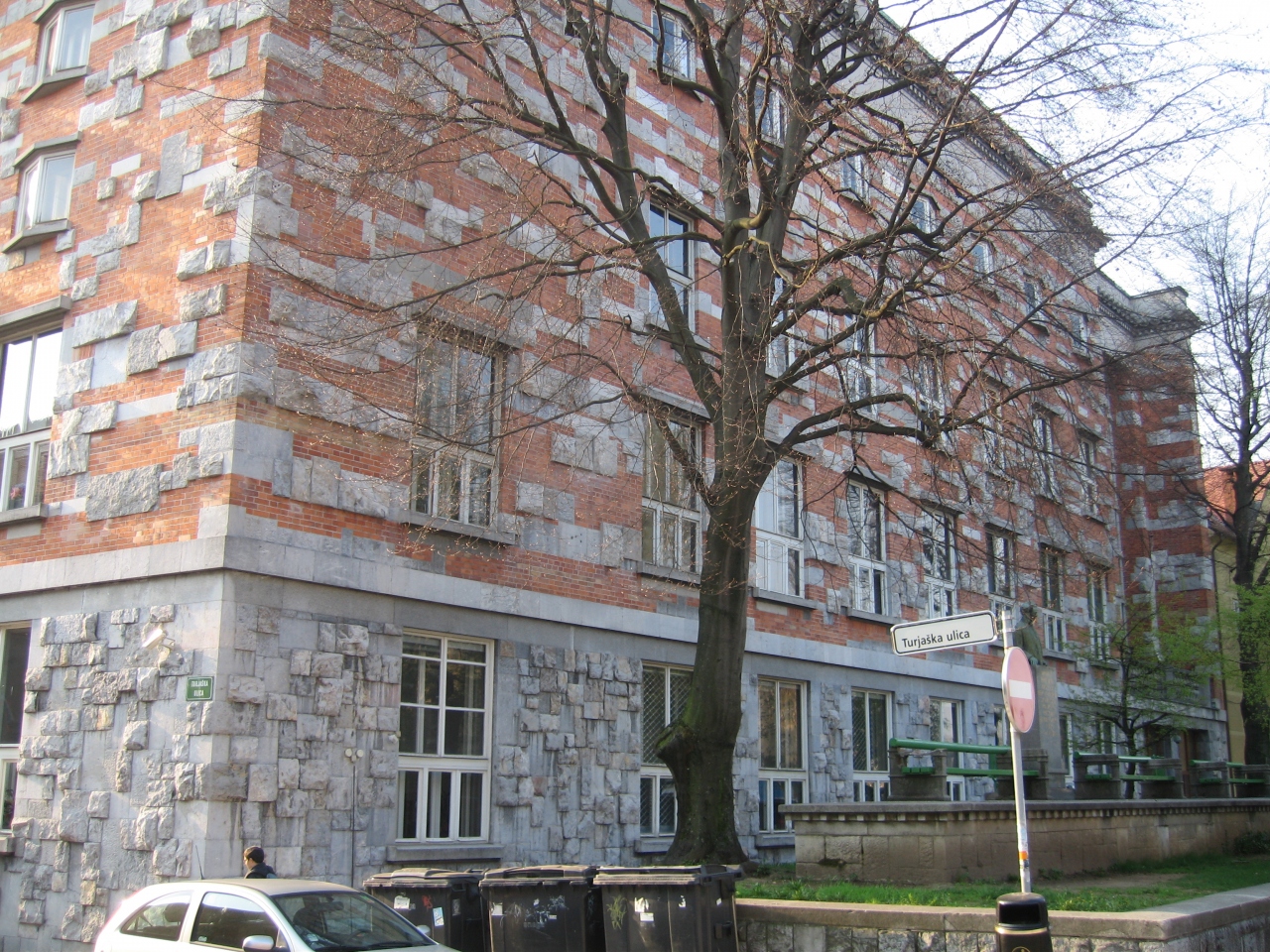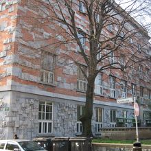 建物はオレンジ色のレンガと灰色の石やコンクリートなどの