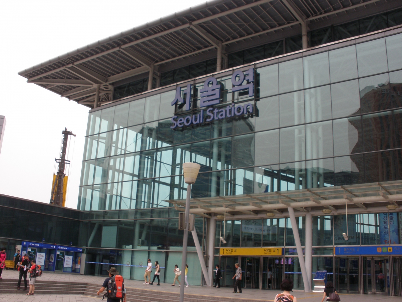 国鉄ソウル駅はガラス張りで現代的なデザインで巨大な駅でした。