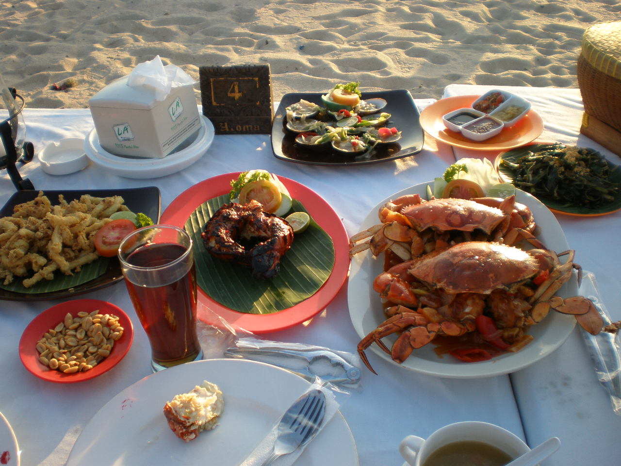 ジンバランビーチは海鮮料理屋さんがたくさん並ぶ場所で、特に夕方から夕日をみながら海鮮料理をいただくというのが名物になっています。