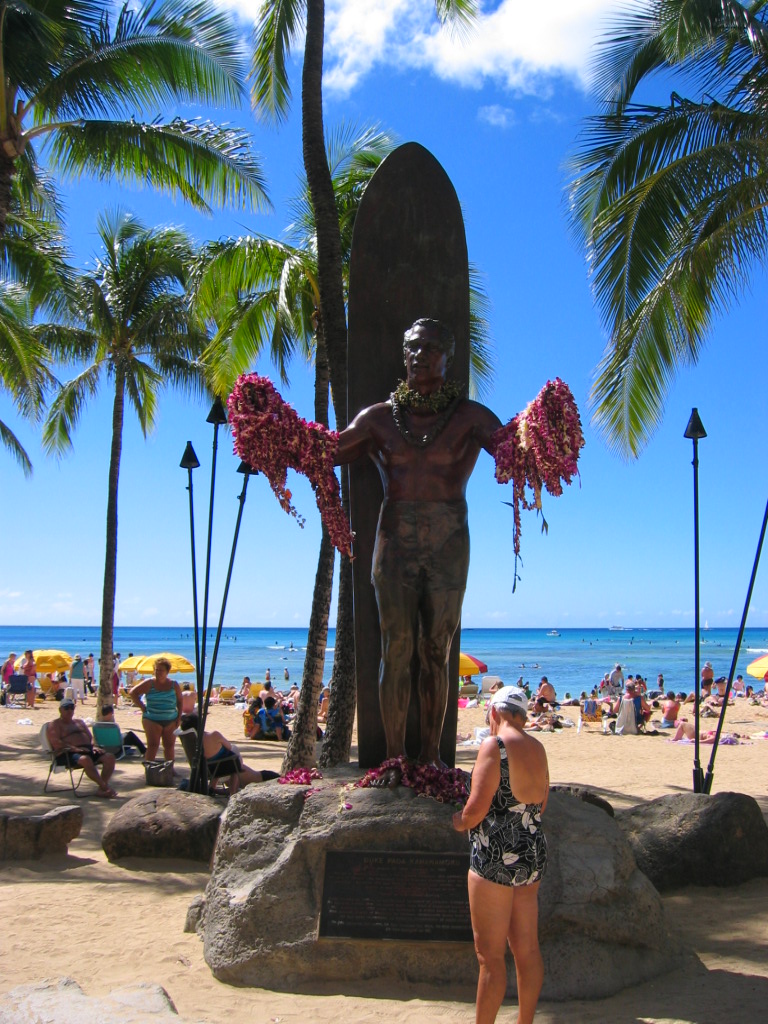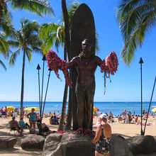 ワイキキビーチの真ん中に建っているデューク・カハナモク像です。