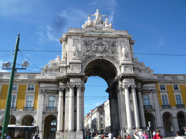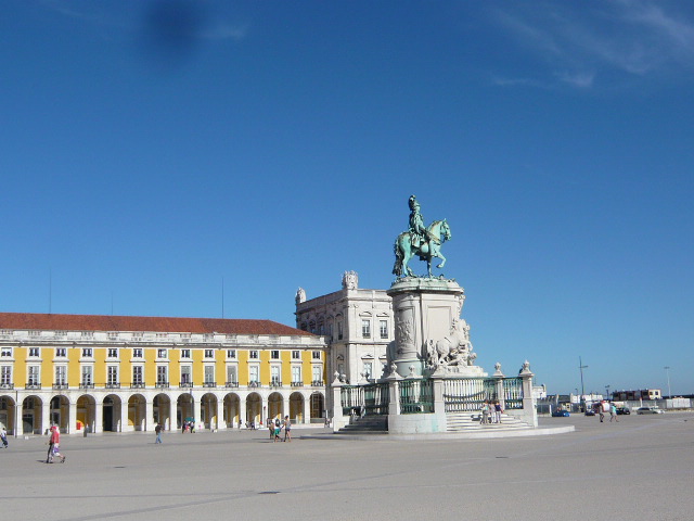 バイシャ・シアード駅で下りて賑やかなアウグスタ通りを散歩していくと、目の前に勝利のアーチが見えました。それを抜けるとコルメシオ通りです。勝利のアーチはアウグスタ通りから見ると、立派な時計台のようでしたが、広場から見ると、彫刻の素晴らしい門でした。広場はとても広く、中央に騎馬像がありました。私が訪れたのは夏だったので、日差しが強く、広場には人はまばらでした。インフォメーションが隣接していて、そこでリスボンカードを購入しました。