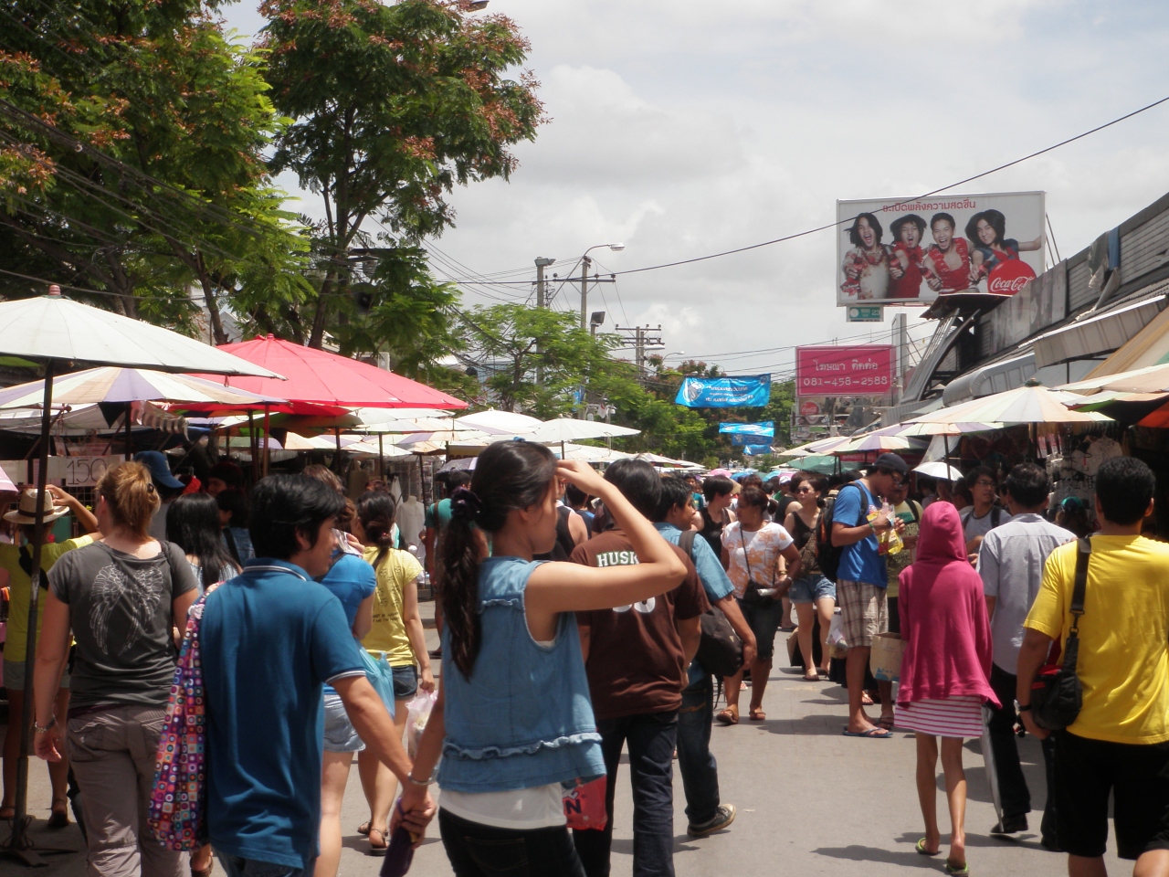 晴れていると暑いので、その対策をしておいた方がよい。マーケット内には食べる所や飲み物を売っている店はたくさんある。