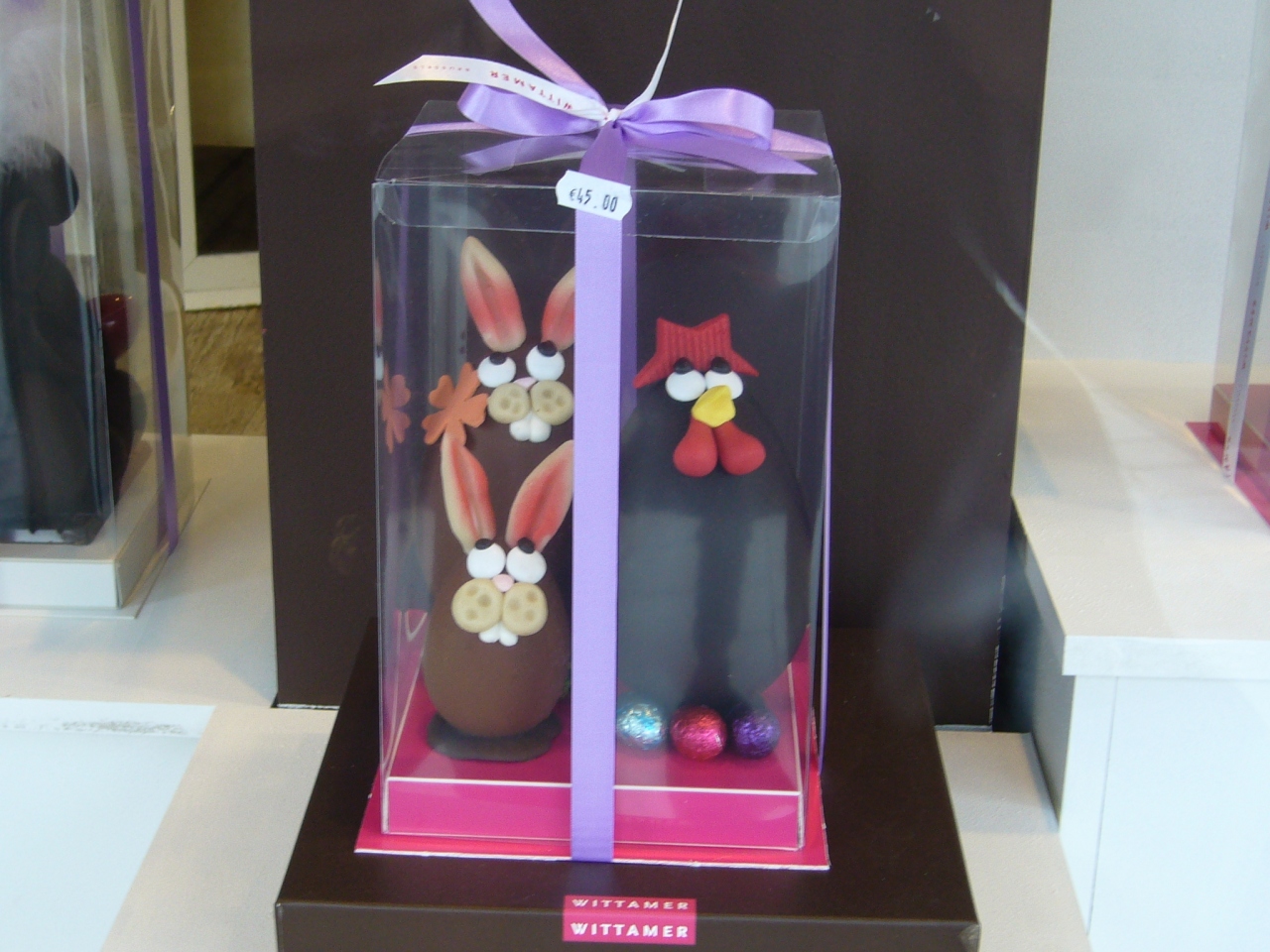 サブロンというのは砂という意味で、昔ここは湿地のなかの砂州だったことに由来しているらしい。広場の周りは土、日になると骨董市が開かれる。またチョコレート屋さんも多くゴディバ、ピエールマルコリーニ、ヴィタメールなどがある。ウィンドウにはかわいいチョコがいっぱいだった。