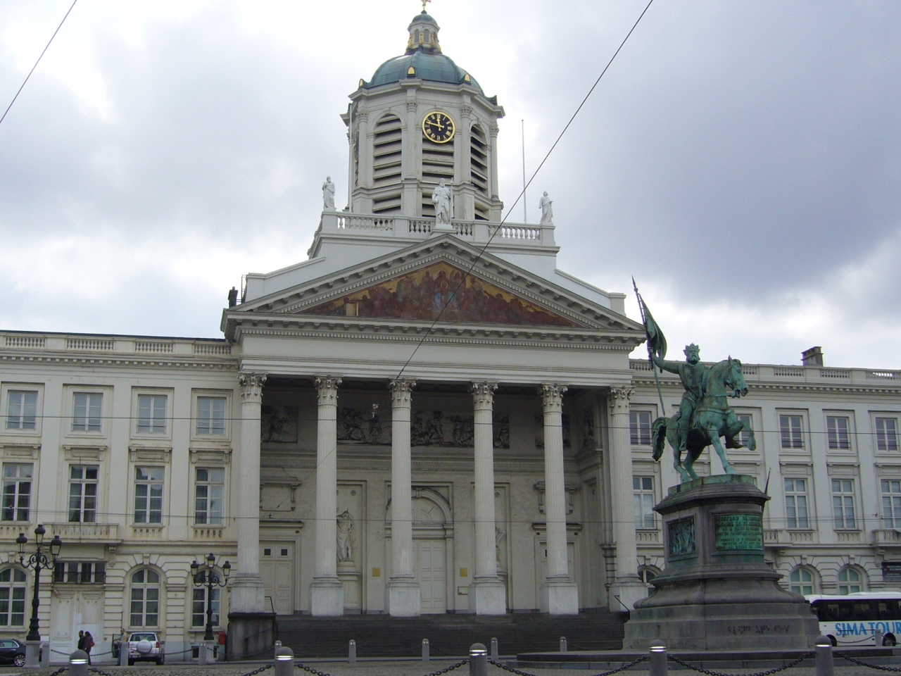 ロワイヤル広場は、王宮の横、王立美術館の向い側にあります。広場の中央には第一次十字軍の指導者であるゴドフロワ:ド:ブイヨンの騎馬像があります。この広場の建物は左右対称に配列されていて、特に入口に特徴がありギリシャ神殿のように4つの円柱の柱が立っている。