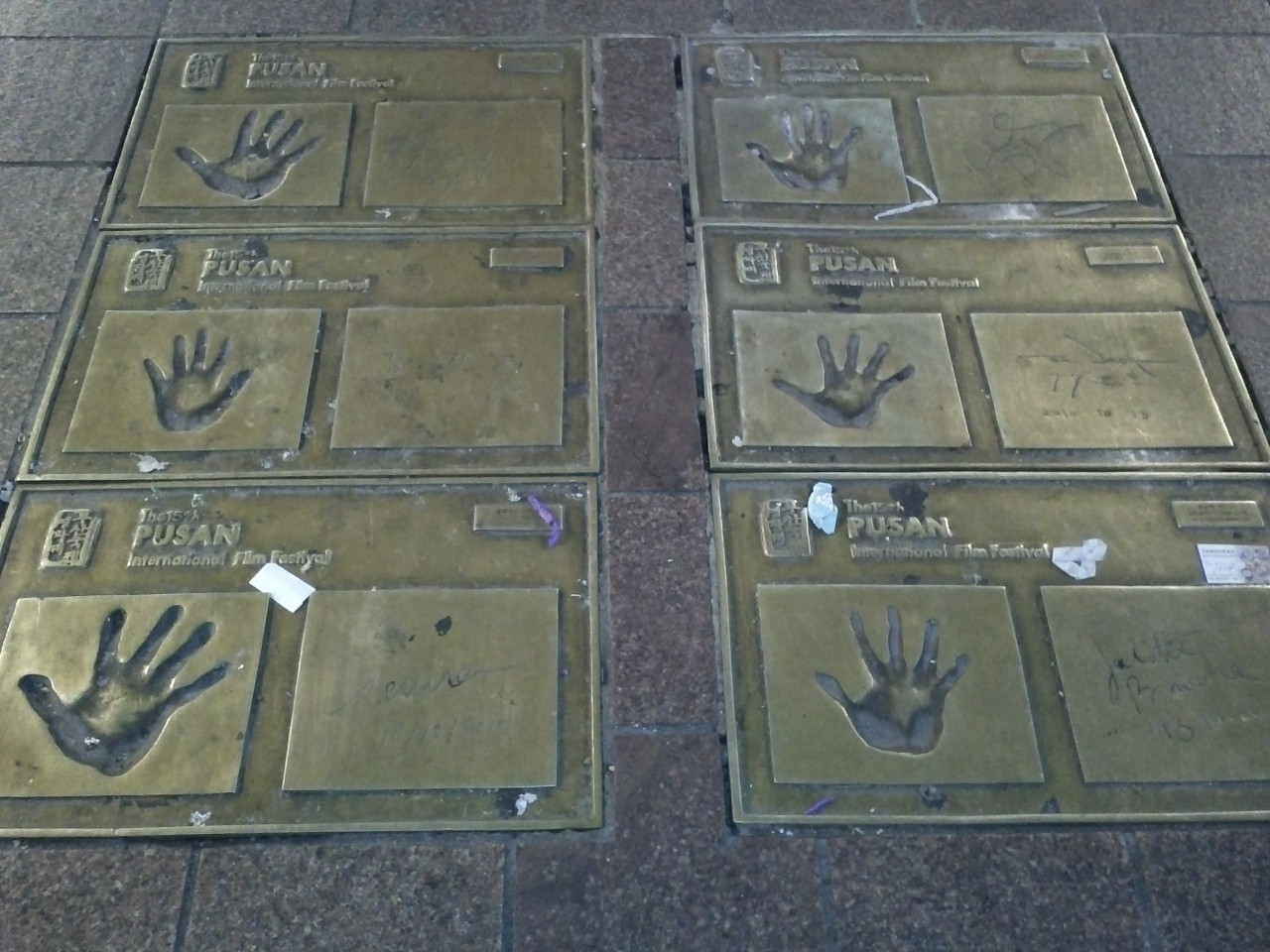 映画祭に参加した俳優や監督などの手形が地面に埋めてあります。