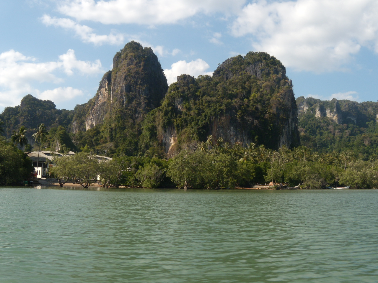 クラビへ行かれたら、ちょっと足を延ばして、ライレイビーチ(Railay Beach)へ行かれるのはいかがでしょうか。クラビタウンから、乗合ボートで片道150バーツ(約450円)ほどです。ライレイビーチは、ロッククライミングのスポットがあり、ヨーロッパ人も多く訪れています。ビーチのそばにはレストランなどもあります。ボートの時間は1時間に1本程度ですので、時間にゆとりを持って行かれると良いでしょう。