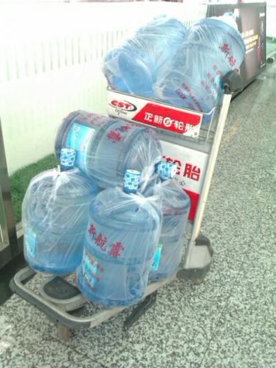 そしてゲートが並ぶところにある土産物屋やレストランに行ったのですが、レストランの値段が激高です。簡単な麺のセットで、80元からとありえない価格設定。上海の空港でさえこの価格設定はありえません。さらには土産物屋に水やジュース類が売っていないのには驚かされました。とてものどが渇いていたので、土産物屋を数軒見て回りましたが、全く売っていないのです。ただし、よく見てみると、水飲み場がいくつかありました。どうやら、水を飲んでおけ!ということのようです。