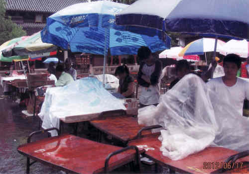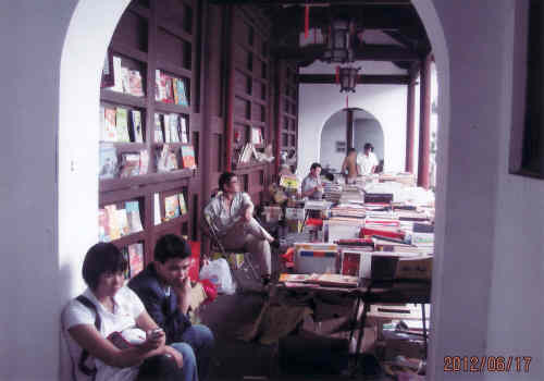 租界になる前の昔の上海(南市)の中にある文廟(孔子)です。対応する武廟(関羽)も近くにありました。まあ日本で言えば天神さま(菅原道真)ですね。学問の神様です。その関連で文廟路には書店、文房具などを扱う店が沢山あります。文廟では毎週日曜日になると境内で古本市が開かれます。今まで日曜日に上海にいる事がなかったので始めて古本市にやってきました。だが普段の行いが悪いせいで突然の雨が降り出して古本市は中止となり人気のある賑わいを見ることはできませんでした。