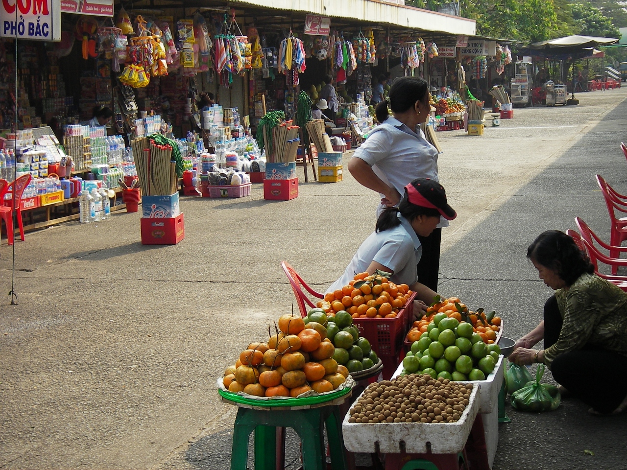 ホームにまでお土産屋や果物屋が並んでいて、国民性がうかがえます。 短距離(→ビエンホア)でしたら切符は簡単に買えます。