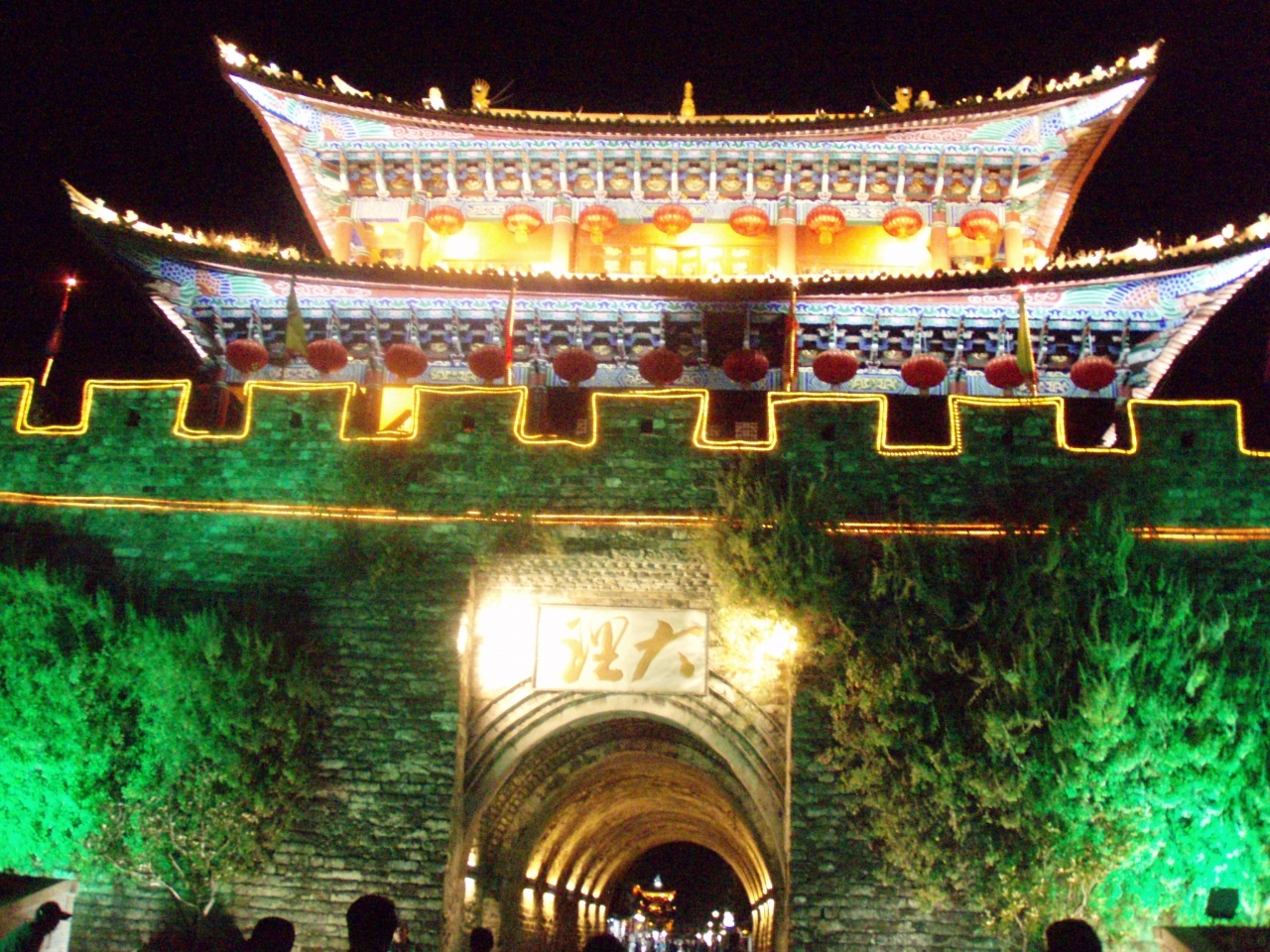 大理古城の入り口と言ってもよい南門。南門は夜はライトアップされ、美しい姿を見せてくれる。昼間は門の上に登り、大理古城の中を眺めることができる。絶景とまではいかないが、行ったら一度は登る価値はあるだろう。また門周囲には安いゲストハウスやレストランがあり、何度も利用した。