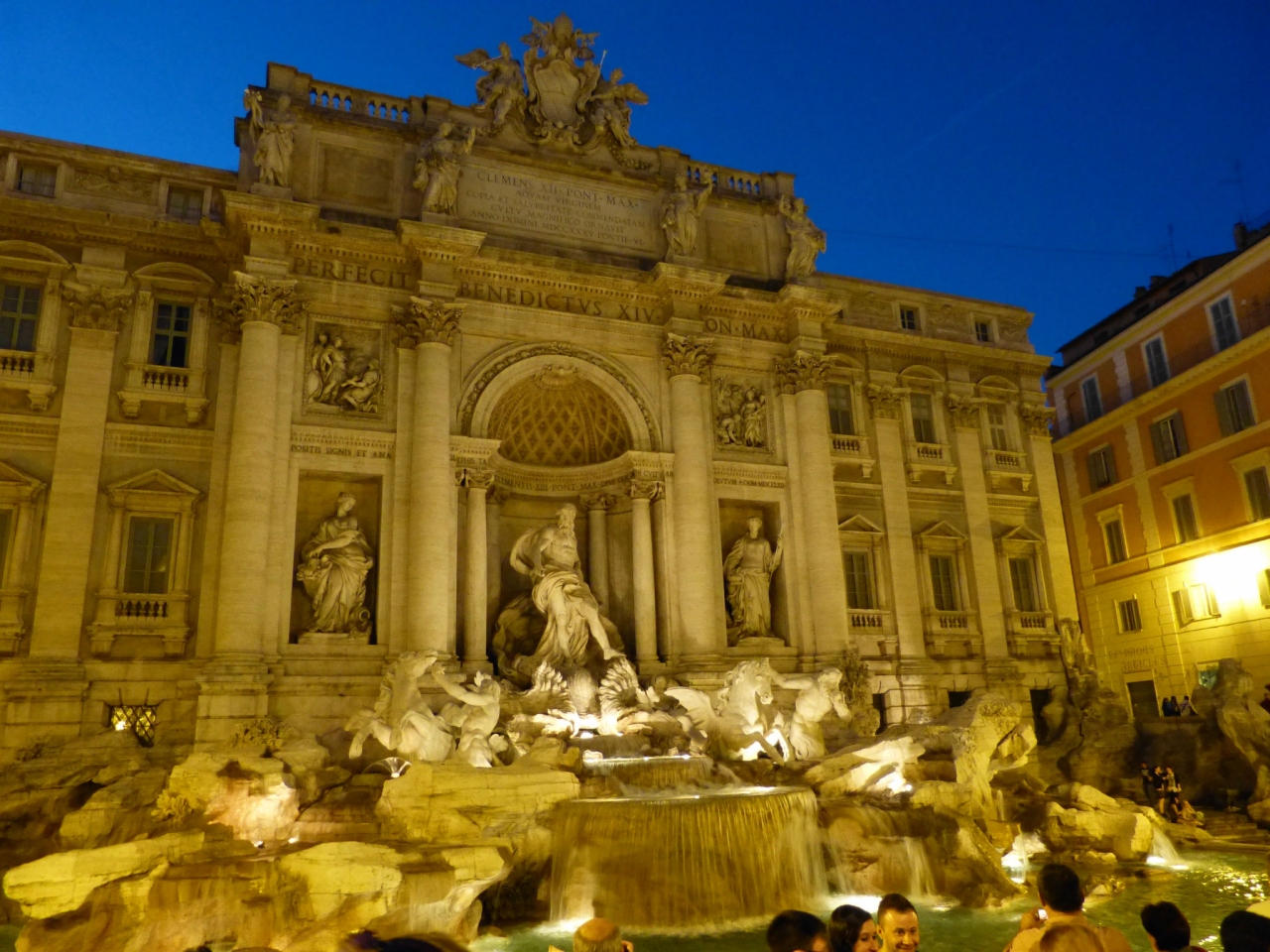 ライトアップされた泉は華やかで、イタリア旅行最後の夜を飾るのにふさわしい