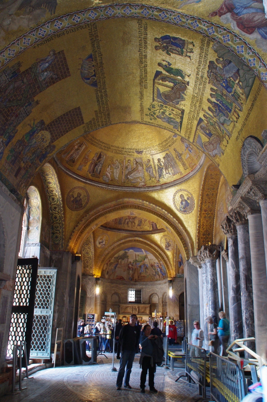 入り口からして金色に輝くモザイク、入るだけなら無料だけど、二階のテラスからはサンマルコ広場が見渡せるので、是非ここまで上がってみて欲しいな。二階は博物館になっていて、4ユーロだったか?