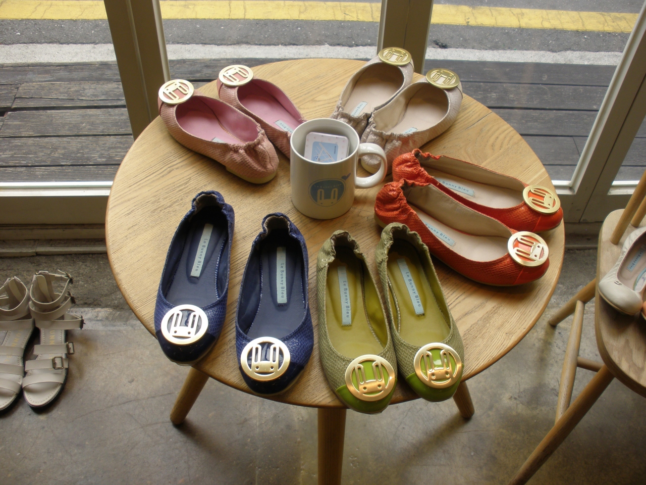オレンジ色の大きなうさぎちゃんマーク入りのフラットシューズが良いなぁ、でも丁度サイズがなくて…。