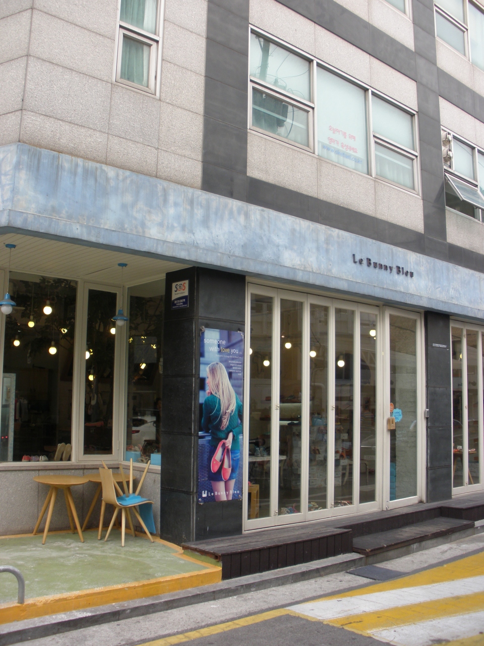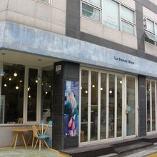 ケイトスペードの二股道を左に入り少し行くと角に、ル・バニー・ブルー(カロスキル)があります。