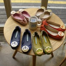 色鮮やかなフラットシューズやかわいいサンダルたち。