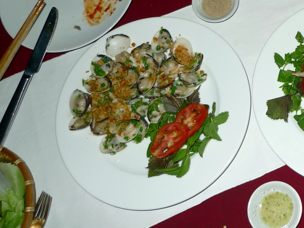 【Clams grilled with crisp spring onions and peanut 125,000D】