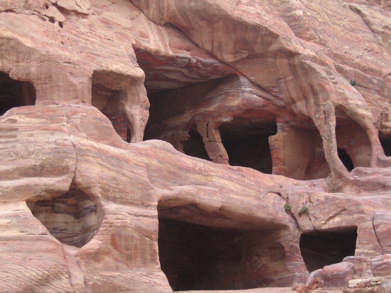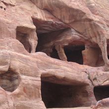 赤砂岩をくりぬいた多くの穴(空間)があります。