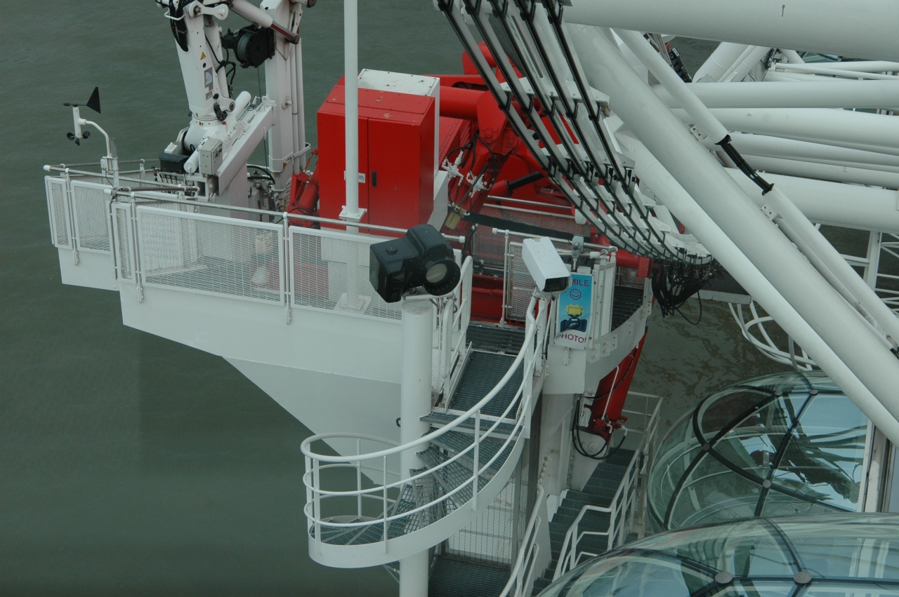 搭乗記念の写真は、地上付近まで下りて来たら建物の上を注目。でかいカメラが居座っています。このカメラは写真に撮っても文句は言われないですが地上に降りてから、販売用のモニターにカメラを向けると文句を言われます。写真は£10ですが、おつりが殆ど用意されていないので高額紙幣を出すとえらい騒ぎになりました。