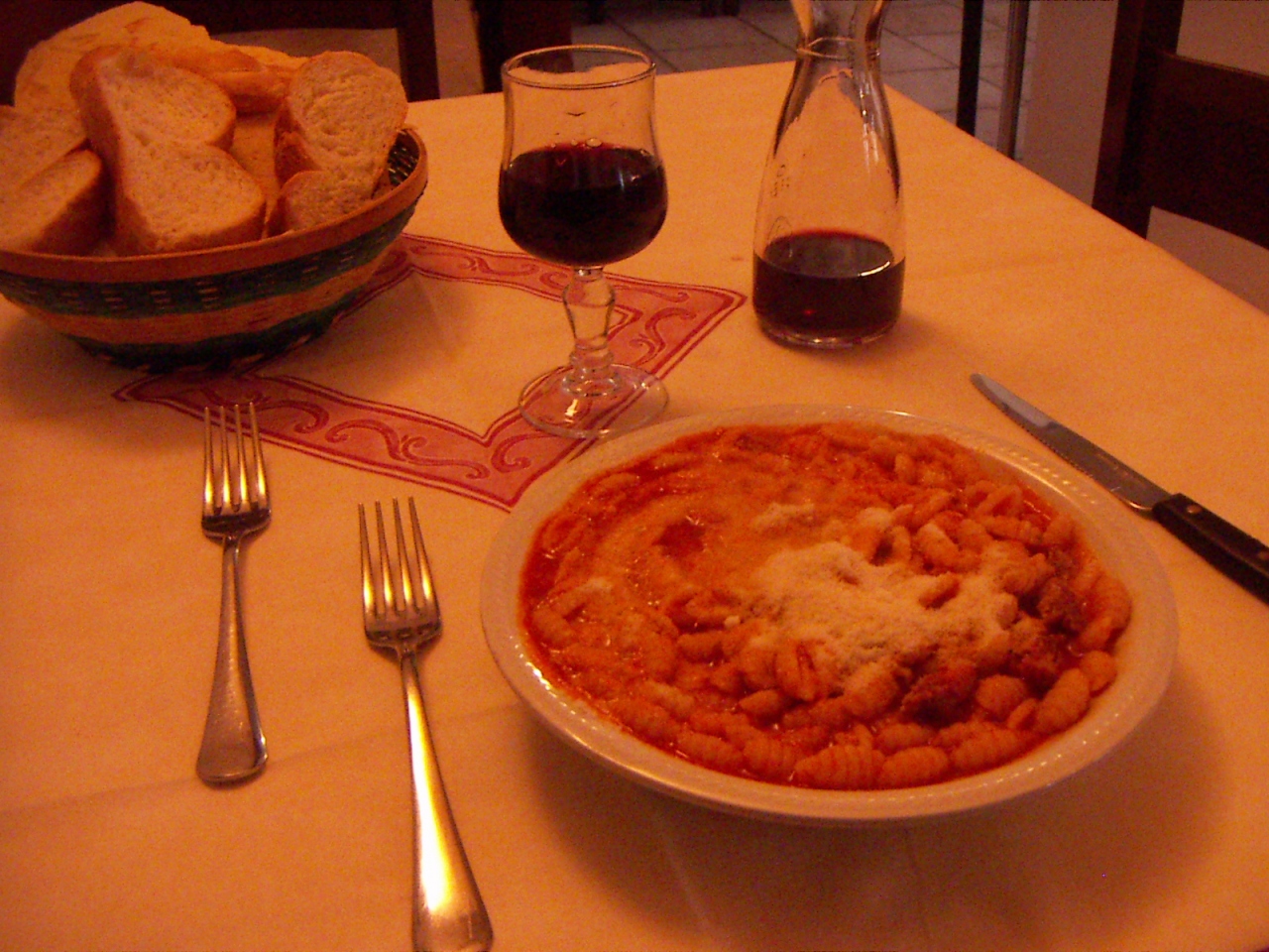 内装が凝っていて、落ち着いた店内です。 観光客向けではないので、料理もワインもお安めです。 ペコリーノのトマトパスタと牛肉のチョップにワインがデカンタ(25dl)で付いて11EUROでした。 雰囲気が良いのでゆっくり食事をして長居するのも良いかと思います。