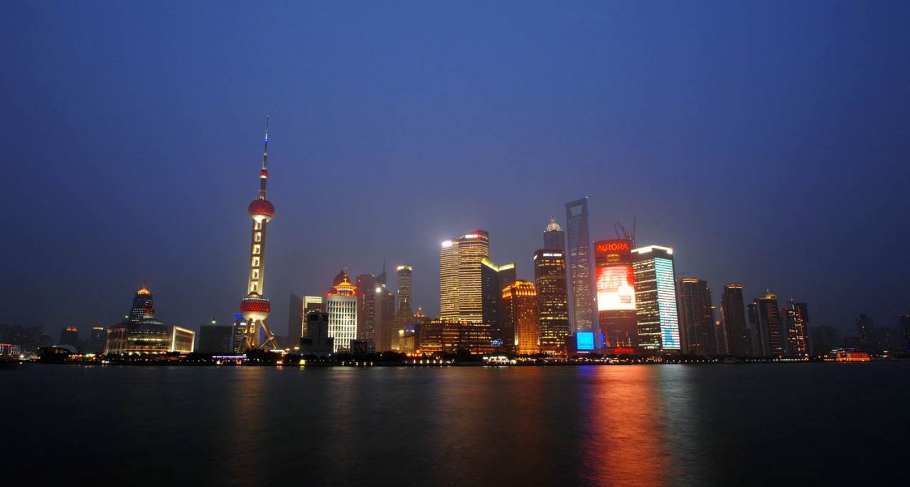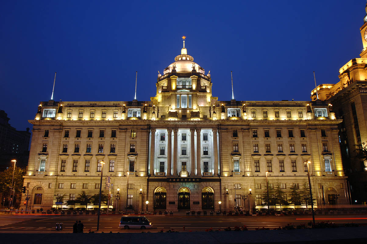 上手く行けば、浦東区ビル群が全部ライトアップした時に、夜の空が「青く」なって広がっているでしょう。