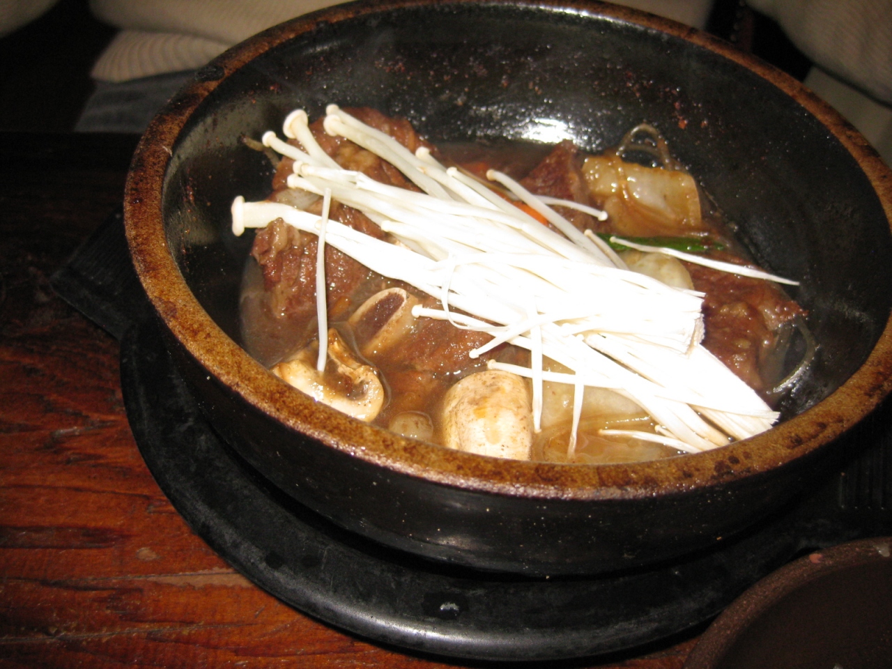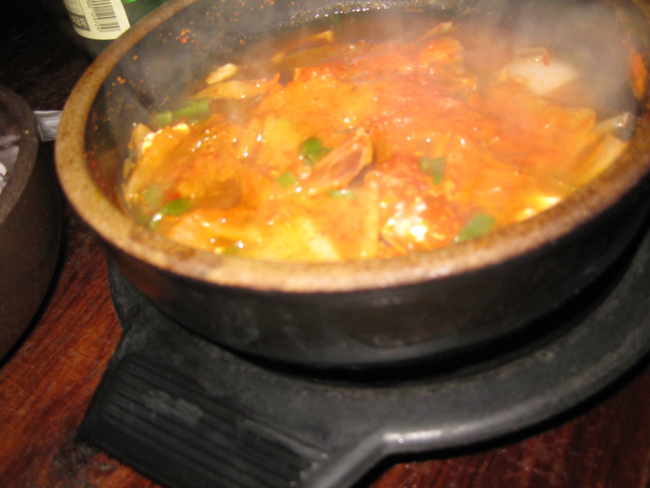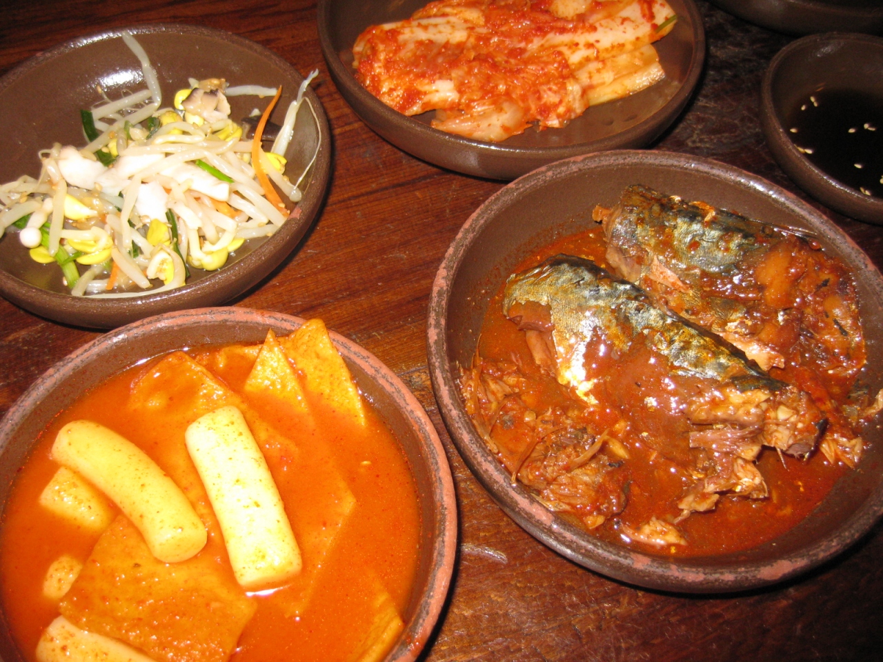 うちのだんなさんが大好きなお店。メインは、トッペギに入った一品料理ですが、それを囲むおかずの数々。正直に言うと、おかずとご飯だけでもいいかもってくらいです。なかでも、チャプチェが最高においしい。日本じゃこれだけで千円くらいするのに。もちろん、メイン以外はすべておかわりOKです。ちなみに、ご飯は雑穀入りです。