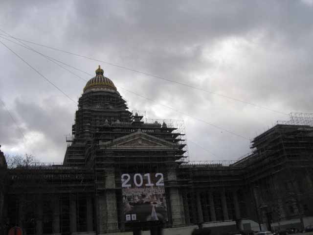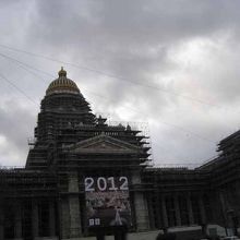 裁判所は改装中でした。だから、足場でがっちり固められてた。