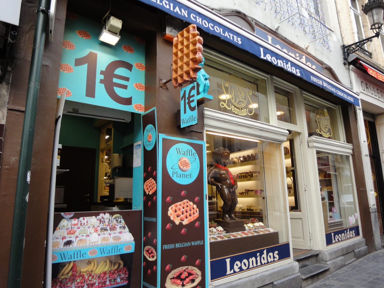 この通りに、こんな名前がついていたのですね。確かに、グラン・プラスから小便小僧への通りですと、なかなか観光では重要ポイントですね。チョコレートやワッフルのショップはもちろん、小便小僧付近には飲食店などもあります。にぎやかで楽しい通りですので楽しんでください。
