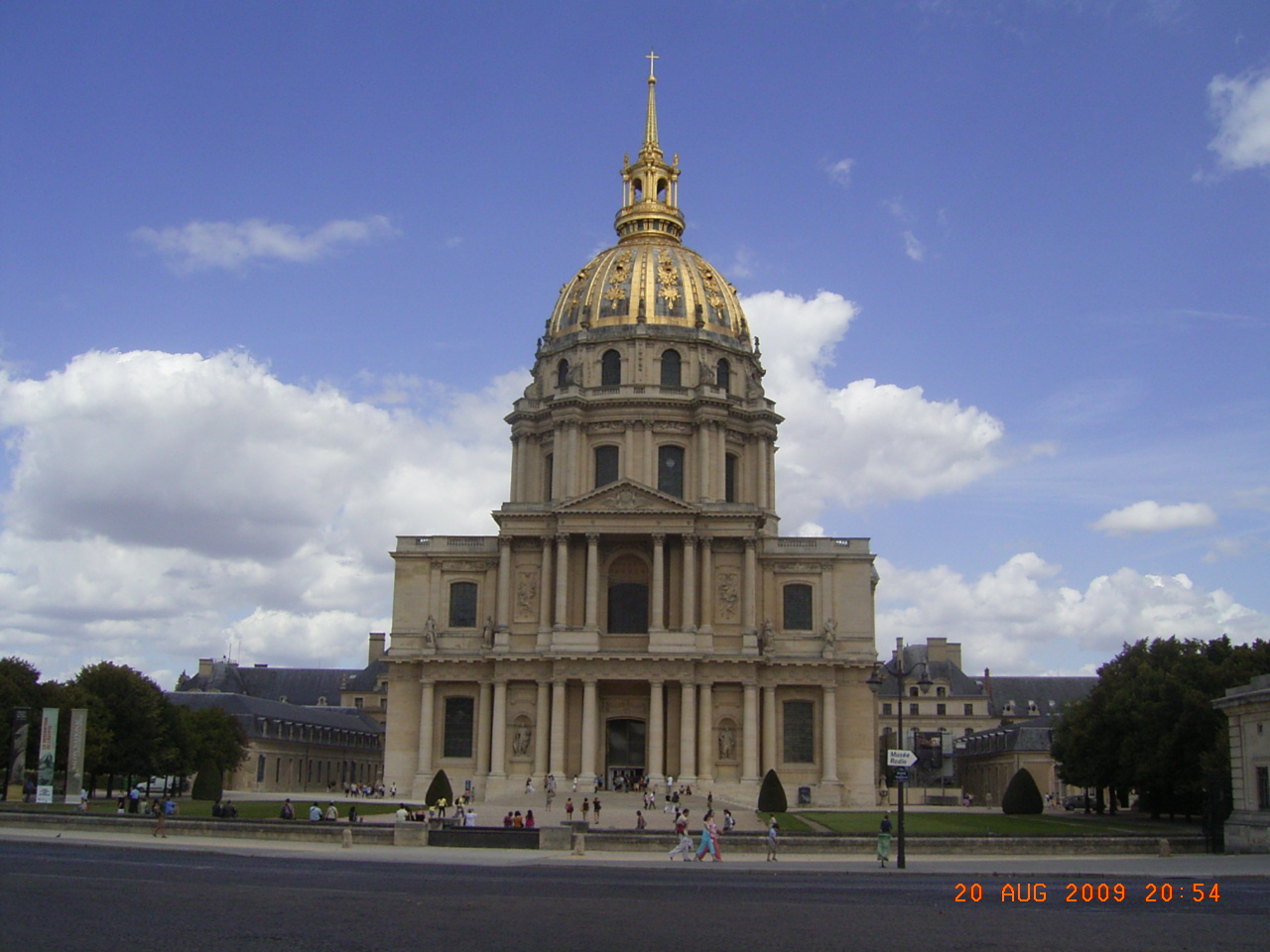 外観は黄金色のドーム式の教会です。現在はナポレオンの棺が安置されています。中に入るとドームの下の中央に赤色の大理石の棺が置かれています。彼の死後、セントヘレナ島よりこちらに移されました。ナポレオンも静かに眠っているのです。
