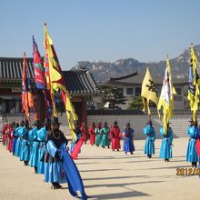 駅からは少し歩くことになるので、タクシーで行きました。セレモニーの時間を調べて行くと、門の前で丁度交代式をしていました。冬の寒い時期だったので、観光客も少なくて式典終了後、記念撮影も存分にできました。訪問の際は、式典の開催時間を調べていくことをお勧めします。