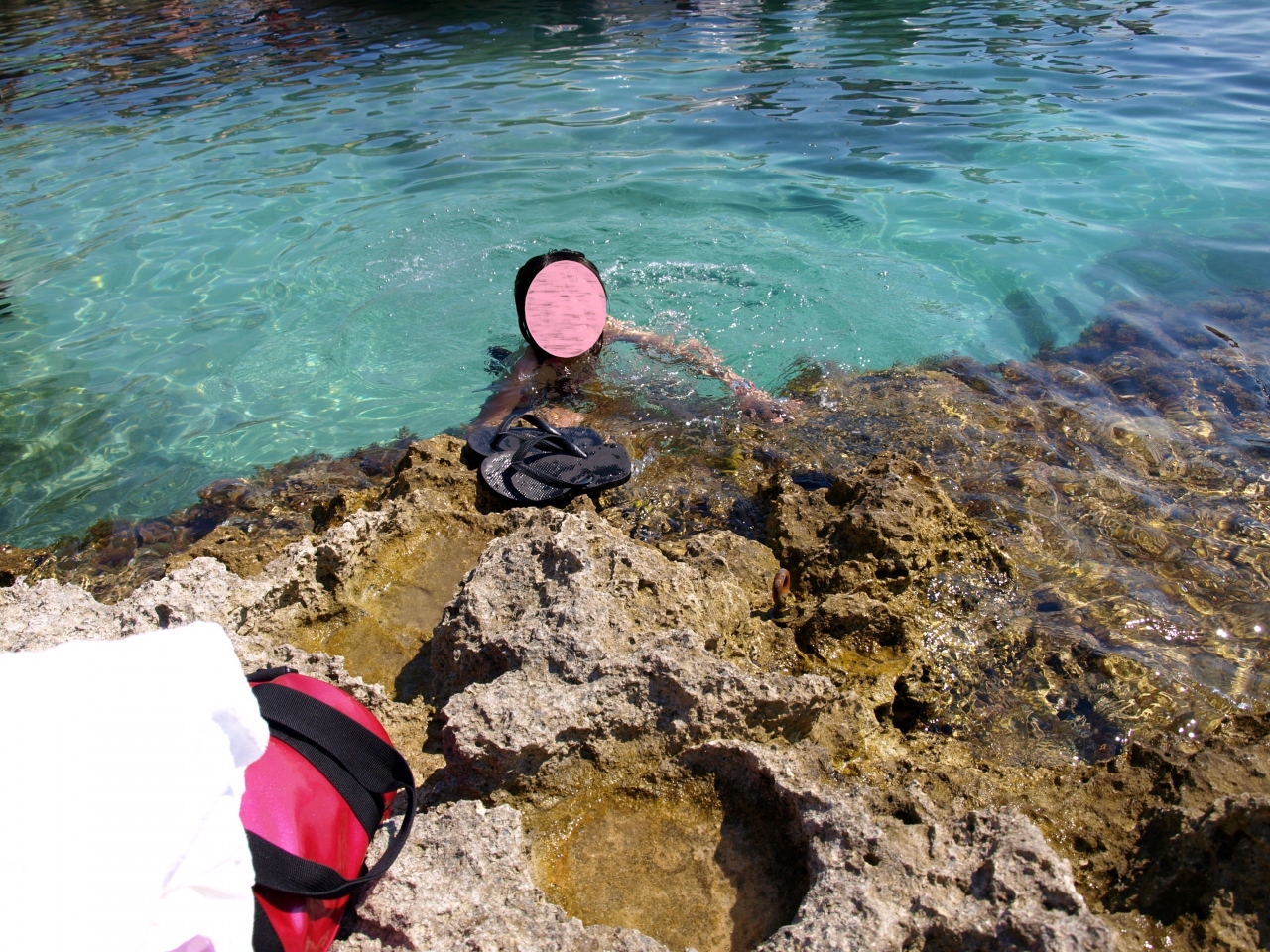 ビーチでゆったり…という感じではないけれど(ごつごつした岩に場所をとって海に入るので)、こんなにきれいな海で泳げるだけで貴重な体験。