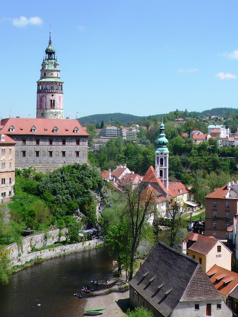ヨーロッパの街には教会や城があり、そこには塔があり、多くがせまい螺旋階段を何百段も上れるようになっています。中でもチェスキーの城の塔は、絶対に上る価値あり!まわりには素晴らしいチェスキーの街と蛇行するモルダウ川、ボヘミアの平原が広がります。