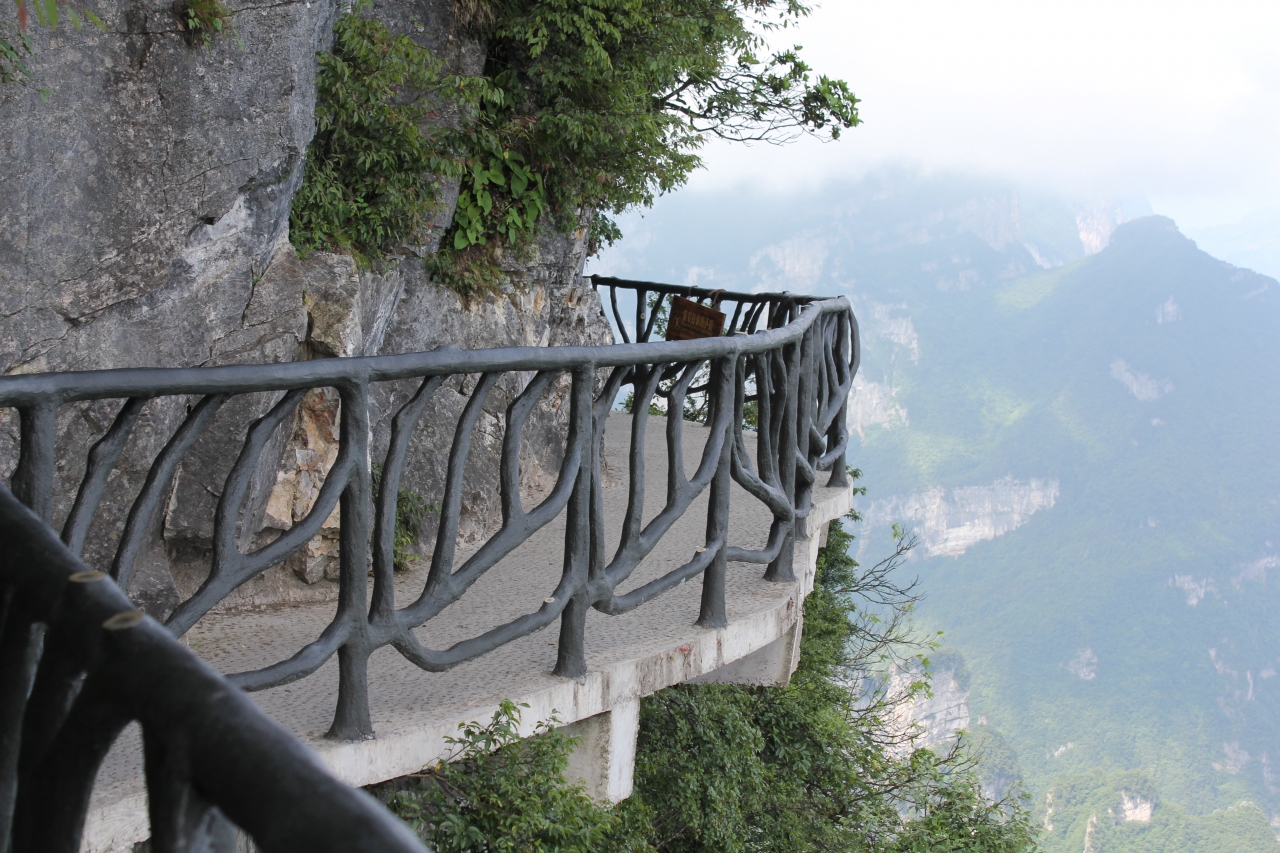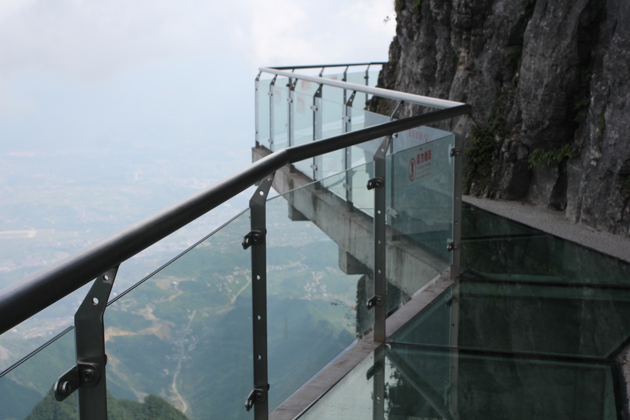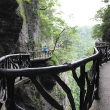 垂直な崖に飛び出した桟道はとてもスリルがあります。ガラスで出来た瑠璃桟道は足元が透けているためスリル倍増です。ここは別料金で5元です。