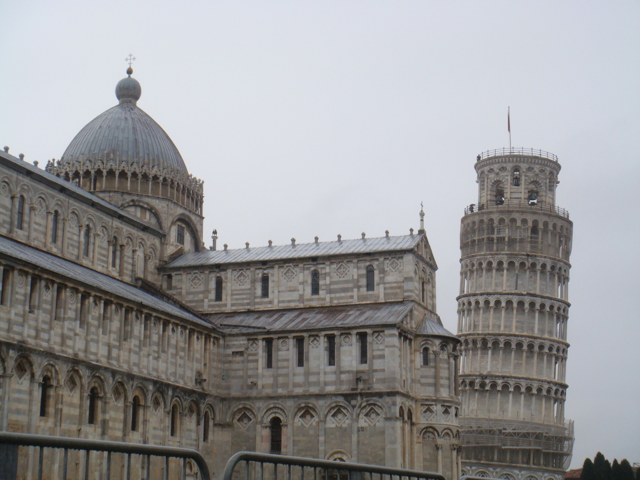 他の建物と比較したらよく分かるのですが、本当に結構、傾いています。倒壊してしまわないように大格闘されているのでしょうね。塔の上まで登れますが、高所恐怖症のため止めておきました。たぶん、上に上ると結構怖そうです。斜塔の周囲一体は、ポーズをとって一緒に写真におさまろうという人でいっぱいです。