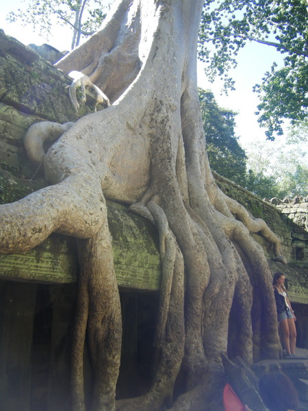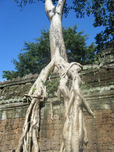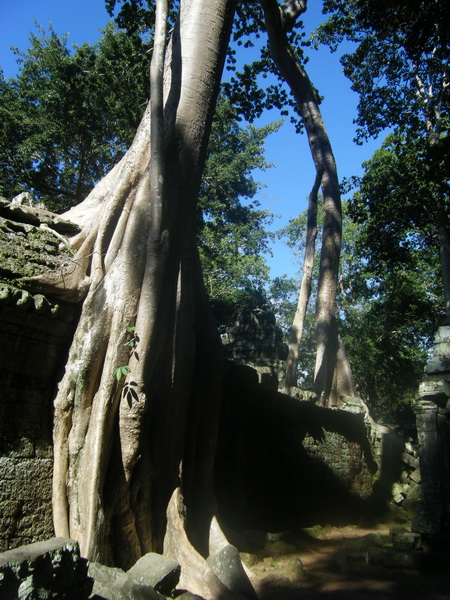 シェムリアプの寺院の中でも、特に印象深かったのがタ・プロームです。寺院の遺跡の中に木々が茂っており、その木々の根が遺跡のいたるところにまとわり付いている姿は神秘的ですらあります。観光客は多かったのですが、場所によっては団体客を避けることができて静かなところもあり、感慨にふけることもできました。