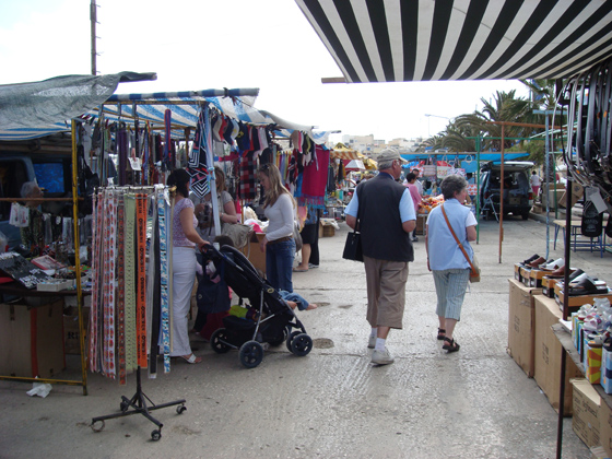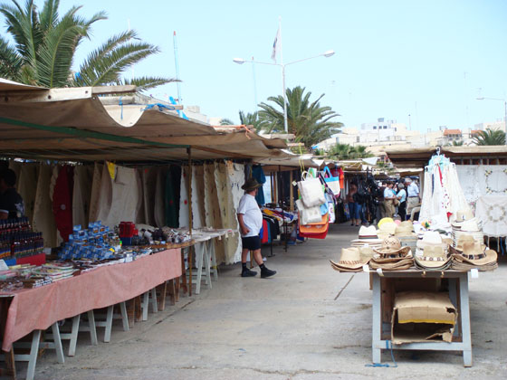 マルサシュロックの日曜市(『Sunday Fish Market』)は,ヴァレッタの日曜市と並び,たいへん賑やかで島中から人がやってくる。市そのものの長さは100~150mほどで,大きなレースがいくつも吊るしてあり,海からのそよ風に揺れているのが印象的である。市の裏側では漁師がもくもくと仕事をしていたりするなど,街の人々がふつうに生活している中で,市が開かれているので,市自体が生活に溶け込んでいるかのようだ。売られているものも庶民的なものが多く,地元の人の手作りによるセーターやレースといったものが並べられている。
